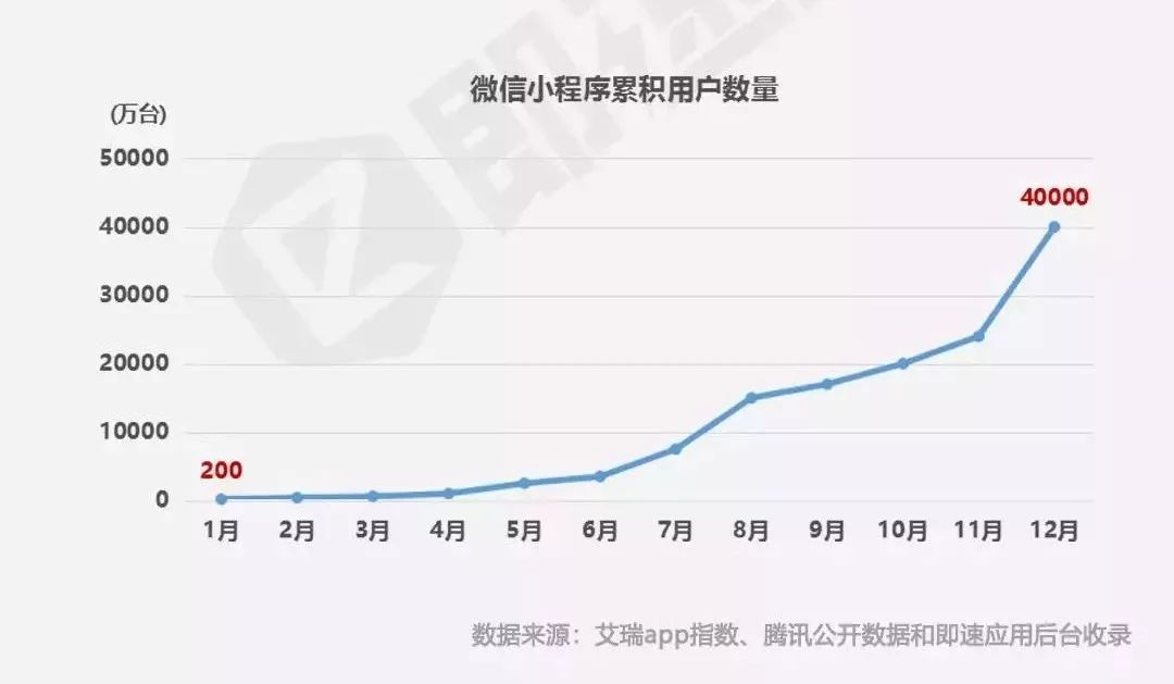 根据小程序第三方平台“即速应用”统计的数据来看,经过一年的沉淀,小程序累积用户总数已经接近4亿,意味着有将近一半的微信用户成为了小程序用户,且人均在线时长仍在持续攀升。